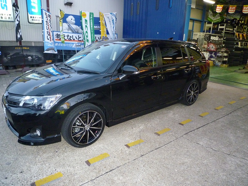 ブラックの車に、マットブラックのホイールで、渋く仕上がりました。