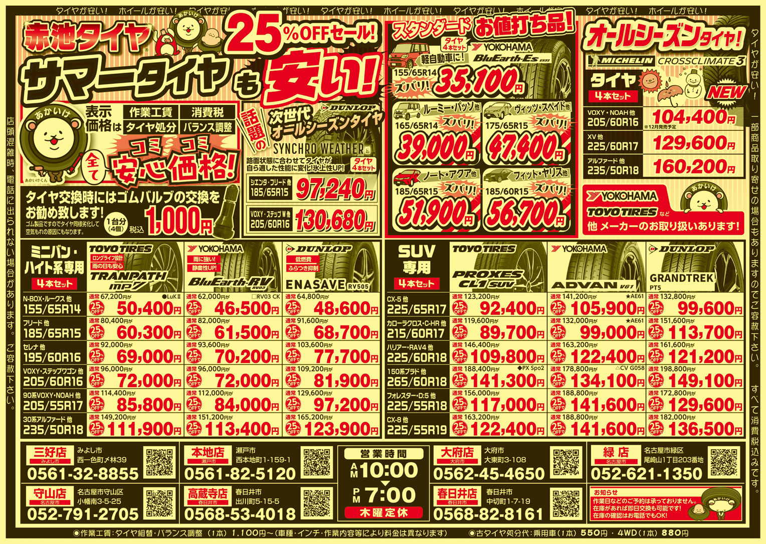タイヤ、ホイールなら赤池タイヤにお任せ!愛知県に8店舗、スタッドレスタイヤ、オールシーズンタイヤ、アルミホイール、お気軽にご相談ください。