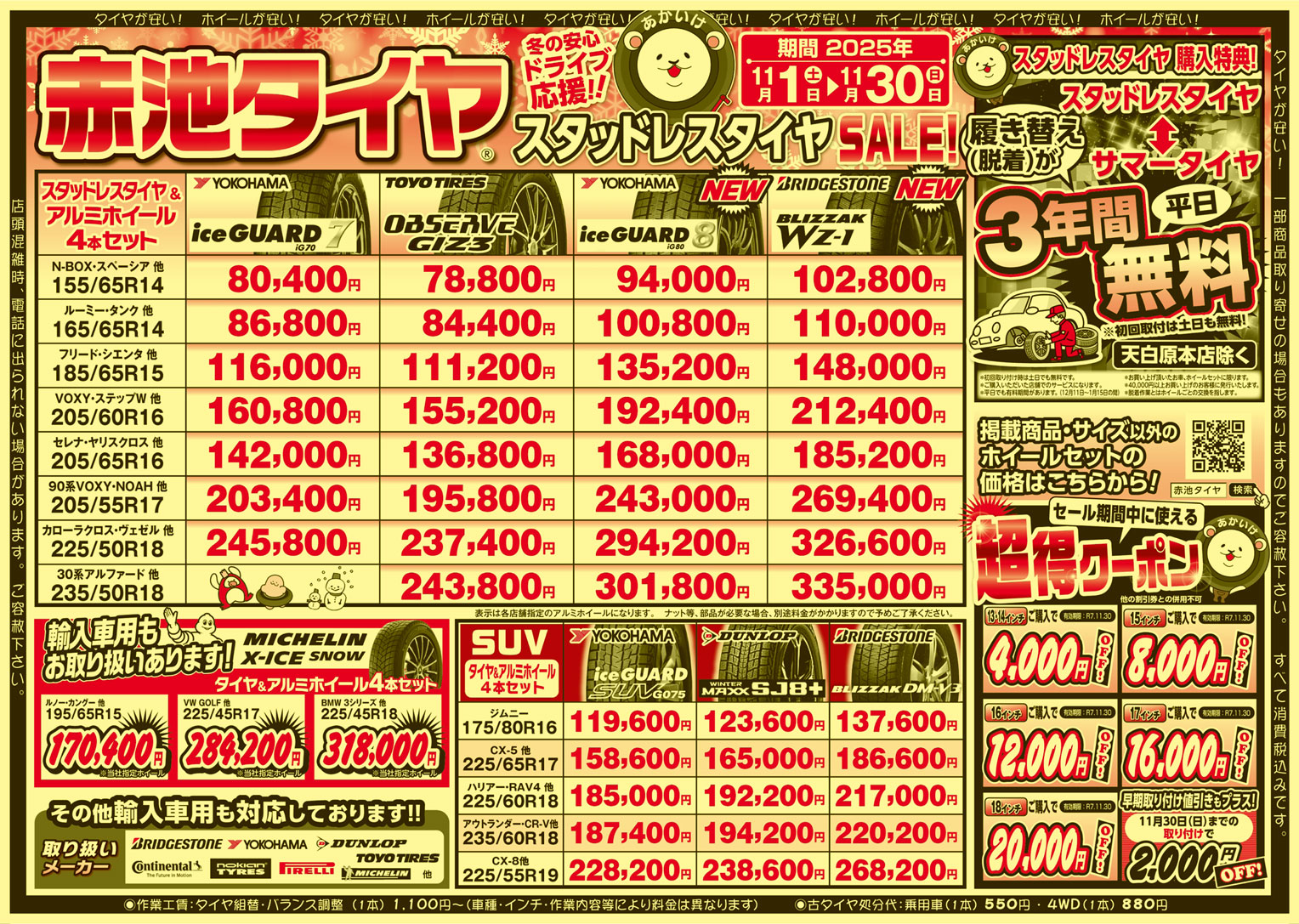 ★2025年チラシ掲載商品以外のスタッドレスタイヤホイールセットの価格はこちらから!★