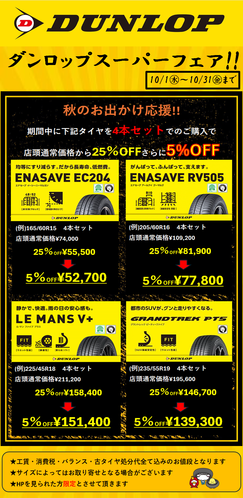 現金特価 工賃、消費税、古タイヤ処分代込み価格
